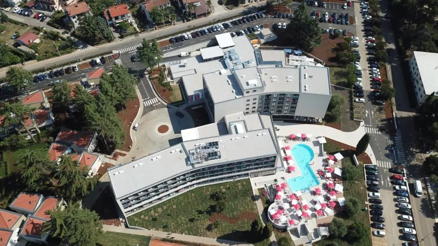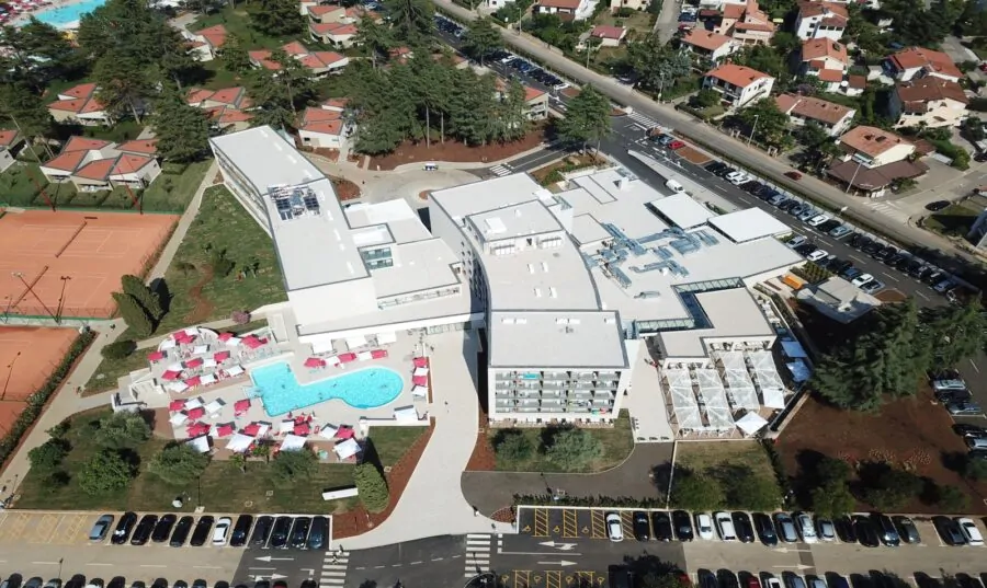 Izgradnja hotela i turističkog naselja Laguna Park 4* u Poreču. Površina zahvata cca 73.000 m2, površina objekata 20.121 m2. Hotel i turističko naselje sa sastoji od ukupno 309 smještajnih jedinica raspoređenih na hotel koji ima 154 smještajne jedinice, turističko naselje koje ima 155 smještajnih jedinica raspoređenih u zonu vilage sa 16 objekata u kojima ima 91 smještajna jedinica, zonu apartmana sa 19 objekata u kojima ima 43 smještajne jedinice i 21 pojedinačnu vilu. U sklopu naselja je izgrađen veliki bazenski kompleks sa toboganima čija vodena površina iznosi 1.516 m2 i restoranom, kuhinjom i barom. Jedan dodatni vanjski bazen se nalazi u zoni vila. Hotel se sastoji od 7 dilatacija maksimalno 6 katova. Konstrukcija hotela je armirano betonska i čelična sa vruće cinčanom AKZ zaštitom.